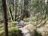 Eine Mutter mit ihren beiden Zwergen macht sich gerade auf zur großen Wanderung - wie schön, so was zu sehen! Aproposs Zwerge: WIND ROSE - Diggy Diggy Hole. Für mich geht es erstmal 6km auf einem Wanderweg nach Eschenlohe. Leicht profiliert, meist im Schatten. Prima zum Warmlaufen. Ich lande auf einer Teerstraße und biege ab nach links, laufe neben der Straße weiter, bis es links hinauf auf den einstigen Geheimtipp Osterfeuerkopf geht. Den Einstieg mit der kleinen grünen Tafel erinner ich gut, war ich doch im Juni 2019 schon mal hier unterwegs, vom Heimgarten her kommend. Wollte zum Rundenabschluss noch rasch hinauf.