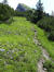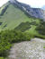 Um 8:30 Uhr laufe ich los. Ein kurzes Stück auf einem Wirtschaftsweg, ausgeschildert mit Enningalm/Notkarspitze. Weiter auf einem schattigen Waldtrail, der bald wieder auf den Forstweg trifft. Links geht es hier schon zur Enningalm, ich aber biege scharf nach rechts ab, weil ich eine Etage höher über die Pflegeralm durch das Tal laufen möchte und mir Schatten erhoffe. Denkste!
