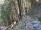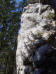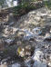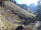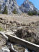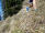 Zunächst quere ich eine noch blumenfreie Wiese bis unterhalb des Bockstein und lande auf dem steilen Pfad hinunter im Bergwald. (Gerade aus weiter ginge der Hauptweg runter zur Bucheralm.) Sehr unaufgeräumt die Ecke hier, dafür wildromantisch. Das Laufen geht ganz gut. Dann kommt es mir komisch vor, weil ich schon lange unterwegs bin und kaum an Höhe verliere. Ich gucke auf das Navi. Bingo! Hier irgendwo muss das Fensterl sein. Ein hoher Felsblock rechts neben dem Pfad taucht auf. Hier sollte es irgendwo sein. Da ich weder Pfad noch Trittspuren finde und keine Lust habe, mich durchs Unterholz zu schlagen, verwerfe ich fürs erste den Plan. Fensterln kann ich ein anderes mal immer noch.