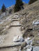 Ich erreiche die gelben Wandertafeln und orientiere mich rechts: Wanderweg 661, Wendelstein über die Spitzingalmen. Zunächst leicht ansteigend dann steiler (oder ist es meine schlechte Kondition?), bringt mich ein Forstweg nach gut 2 km zu einem Pfad links hinauf. Endlich wieder einen Trail unter den Füßen! Erste Versuche, Fotos mit Selbstauslöser zu machen: Handy an einen Stein gelehnt, gedrücktund nach 10 Sekunden Zack! Na also geht doch. Nach 2,5 km spuckt mich der Wald aus. Sonne von vorne, gleißend wie im Sommer. So froh, dem Corina-Wahnsinn entkommen zu sein. Noch über eine Kuppe und schon taucht er vor mir auf, der Techno-Berg. Über die Bocksteinscharte geht es steil hinauf zum Wendelsteinhaus, das ich nach 6km erreiche. Fotos von der Terrasse. Wie Impressionen am Meer um 5 Uhr morgens, wenn alles schläft.