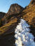 Mit Ende der Dämmerungs setze ich meine Stirnlampe auf. Etwas später schalte ich sie ein – 100 Lumen für 45m Sichtweite genügen. Der Winterweg ist breit und nur oben ein wenig mit Steinen gespickt, also gut, um hinunter zu ballern, hinein in die Nacht. Dann ein winziger Lichtpunkt rechts. Das Feuer einer Krippe in einer Wurzelhöhle.