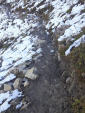 Auf mich wartet der nordseitige Altweibersteig. Zweimal bin ich hier schon hoch, zuletzt 2017. Heute aber ist schon der Zustieg, die Traverse, vereist. Nach wenigen Metern drehe ich um, vor allem, um ein Wegrutschen auf dem geneigten Weg zu vermeiden. Meine Schulter ist auf einem guten Weg, jedes „Rutschen“ schießt sofort in die Entzündungen des Supraspinatus und der Bizepssehne. Beide leicht angerissen.